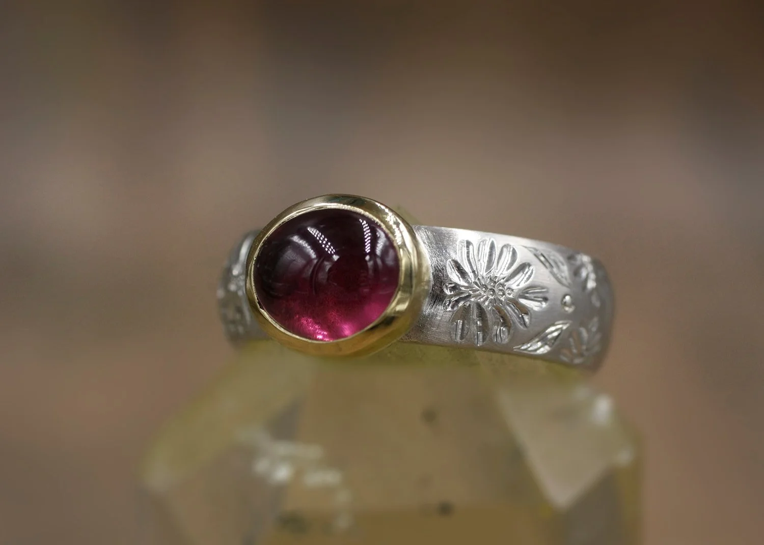 Gravée Woodland Blossom Umba Garnet Comfort Fit Ring